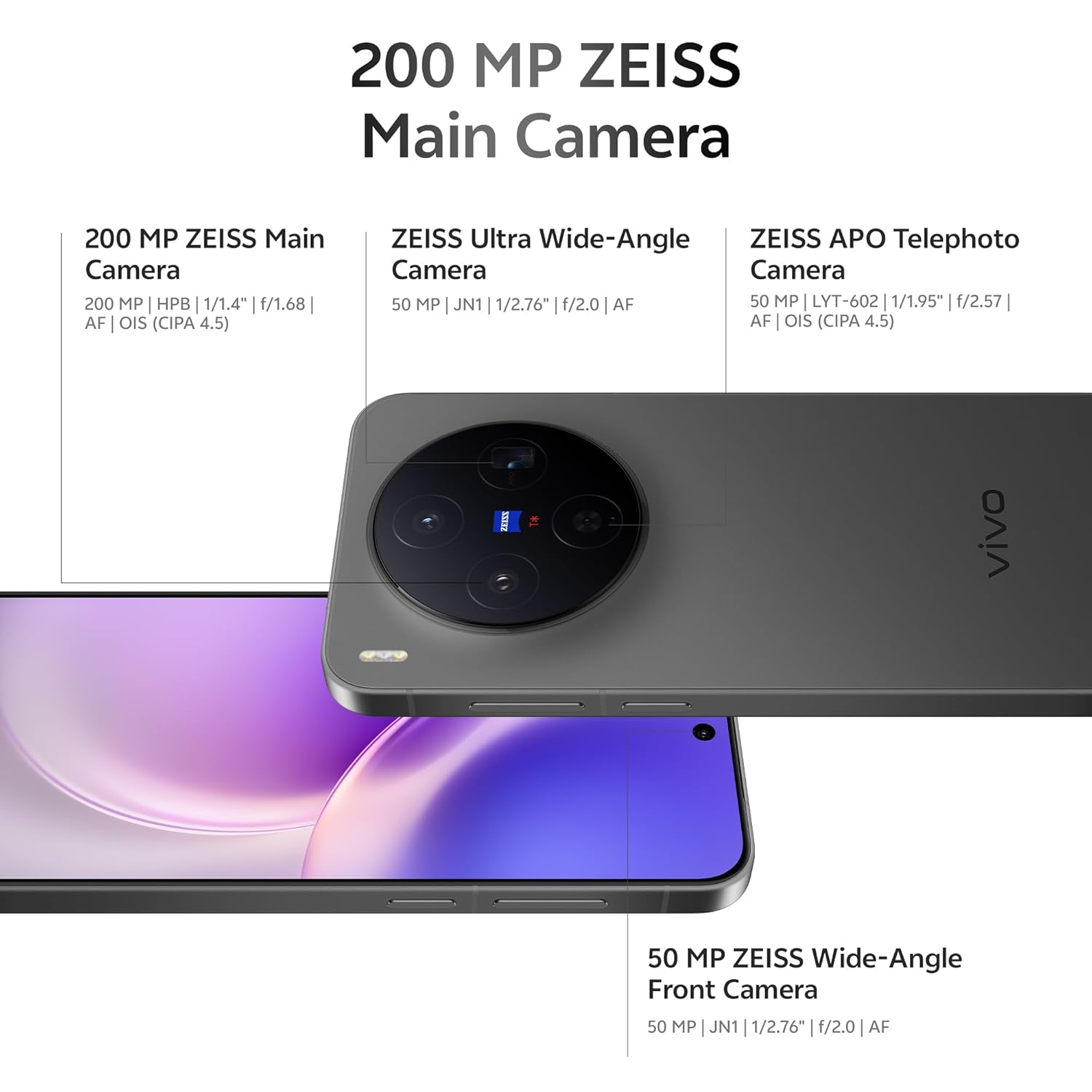 • [Main Camera]: 200MP ZEISS Super Main Camera (HPB customized sensor) | ZEISS T* coating + Super Blue Glass | Optical Precision Calibration for edge-to-edge sharpness | 50MP Ultra-Wide Camera | JN1 sensor | f/2.0 | Autofocus | 50MP ZEISS Periscope Telephoto Camera | Periscope design | Up to 20× telephoto macro |Front Camera – 50MP ZEISS Ultra-Wide Camera | 92° FOV | f/2.0 | Autofocus